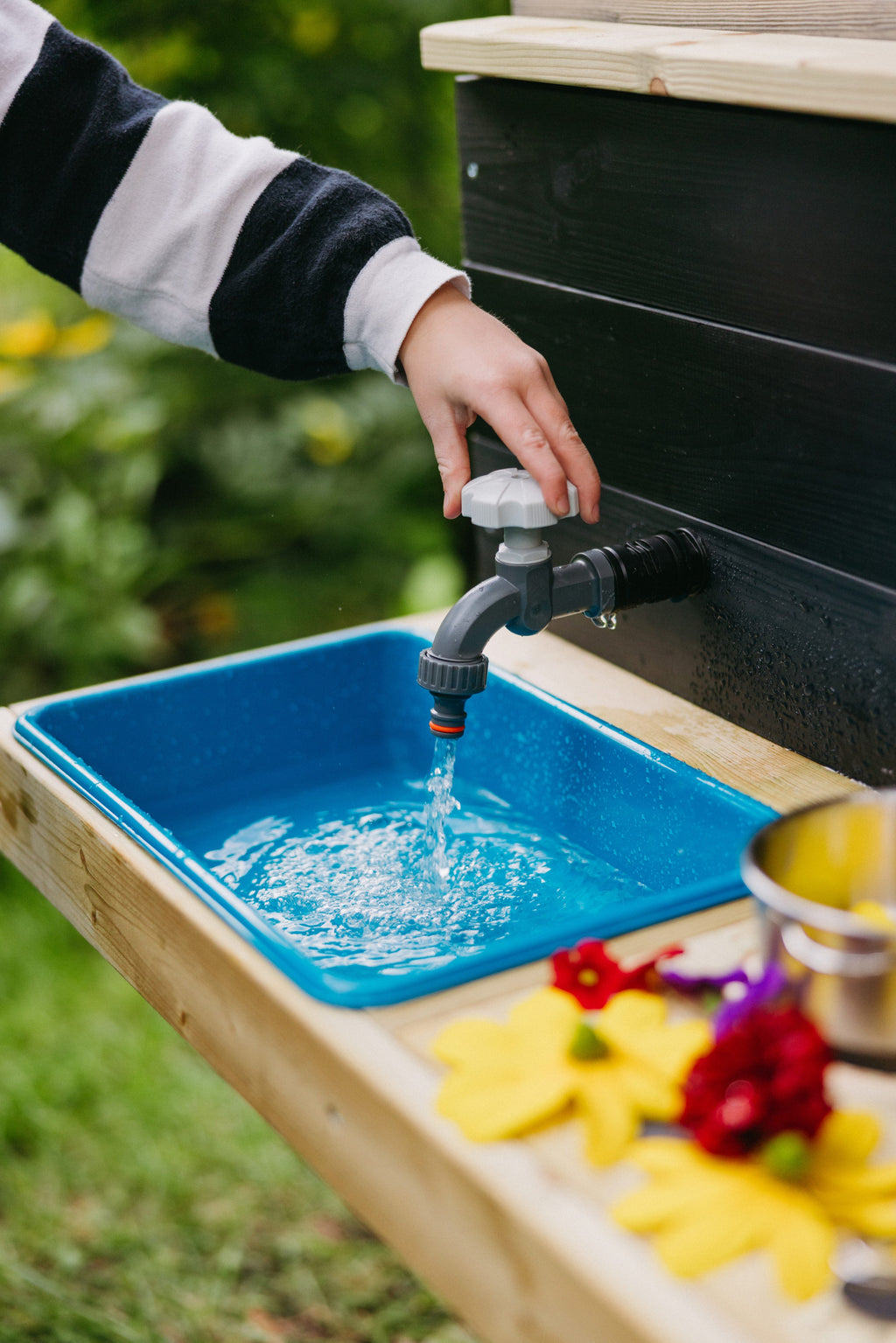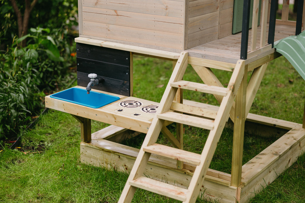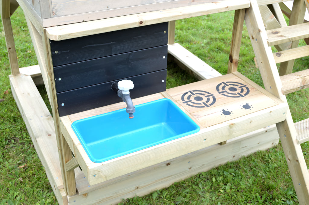 But let's get down to the nitty-gritty. Playhouse has additional kitchen attachment set which is equipped with a REAL water tap that connects to your garden hose. That's right, your kids can live out their wildest "Top Chef" fantasies and wash their dishes like a pro. And let's not forget the oven rings! These babies are the perfect place for your little chefs to cook up some imaginary delights, whether it's a gourmet pizza or a five-course meal.