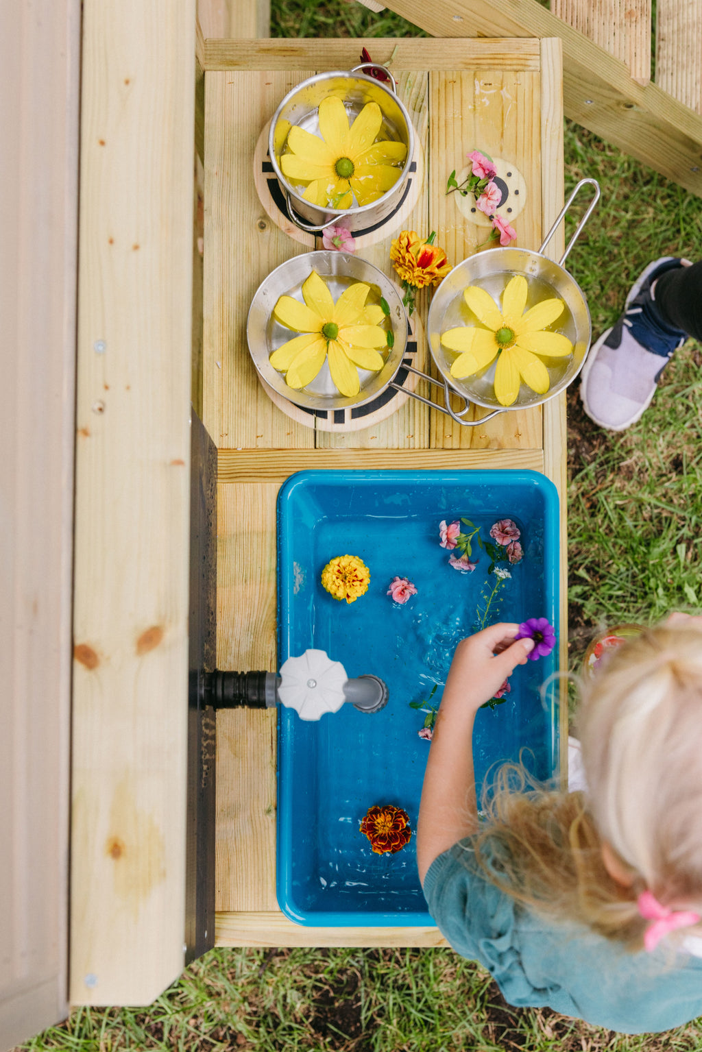 Kitchen attachment is equipped with Plastic Water Tap, Sand and Water Basin, Oven Rings, Plackboard panels.