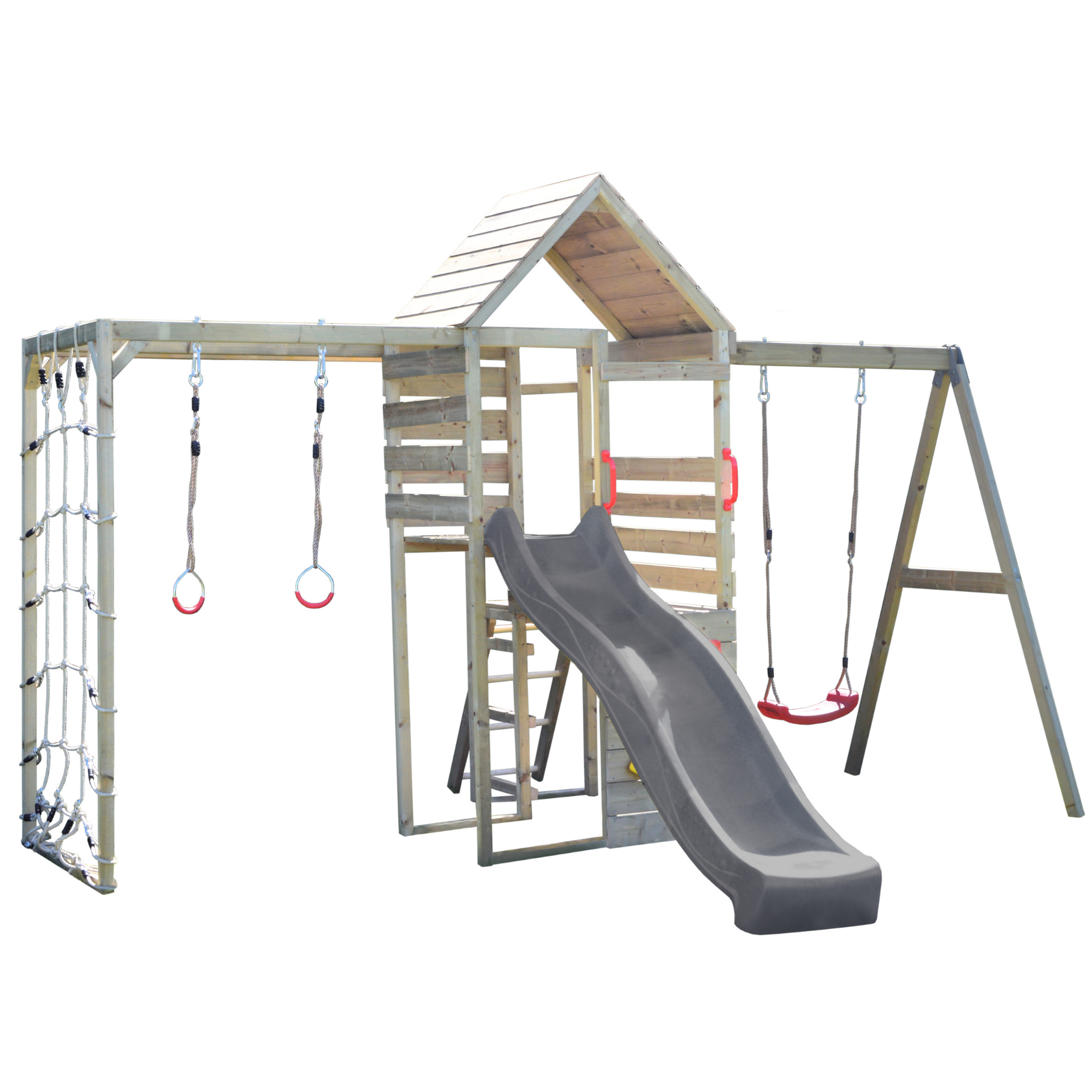 Get ready to watch as your children explore, exercise and have fun in the fresh air with the Gym Attachment. With enough space for up to three children to play, they'll have a blast testing their limits and challenging themselves with the Climbing Net, Gymnastic Rings, and Monkey Bar.