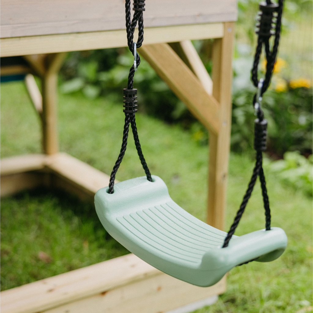 And that's not all - the attached single swings at the playhouse will allow children to clear their heads or feel the gusts of wind while swinging on a hot day. Additional safety will be provided by 4 pieces of metal ground anchors, which are attached to the legs of the swings and platform and driven into the ground.